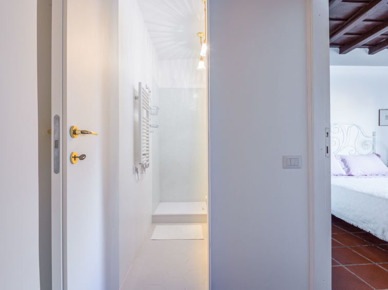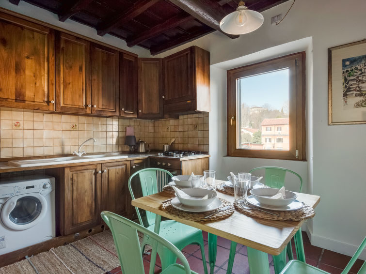 "Al Gianicolo", 2-Zimmer-Wohnung 70 m2 im 3. Stock. Geräumig und hell, komfortabel und gemütlich eingerichtet: Wohn-/Esszimmer mit 1 Doppeldiwanbett, Digital-TV und Flachbildschirm. 1 Doppelzimmer. Kochnische (4 Kochplatten, Toaster, Wasserkocher). Dusche/WC. G-Heizung, Klimaanlage. Heizung nur verfügbar von 01.11. bis 15.04. Zur Verfügung: Waschmaschine, Haartrockner. Internet (Wireless LAN, gratis). Bitte beachten: kein Fahrstuhl. IT058091C2MKQ9BF93