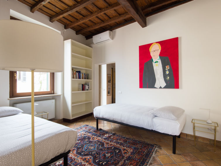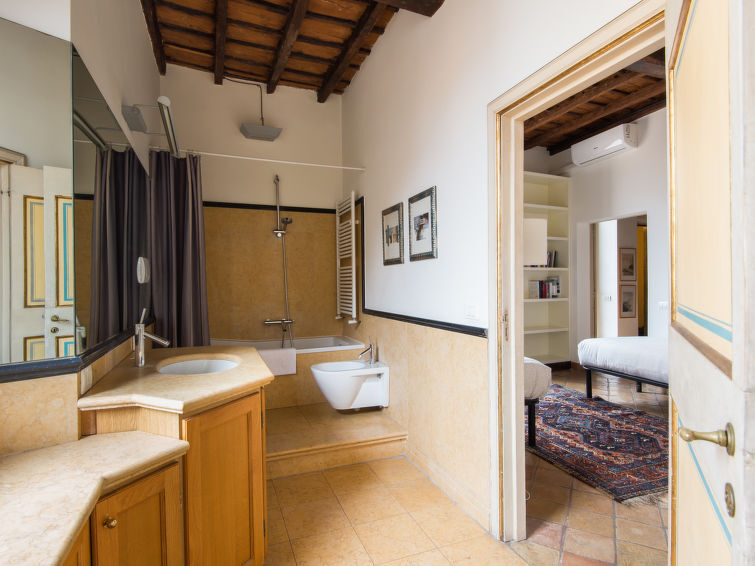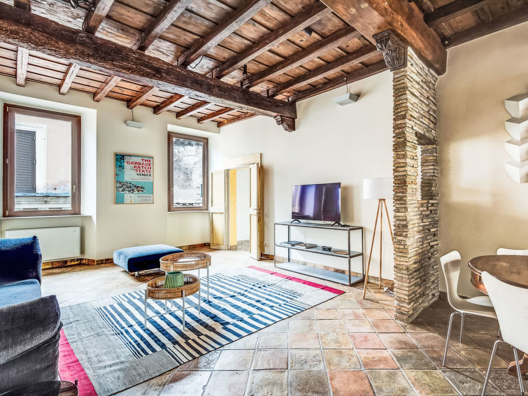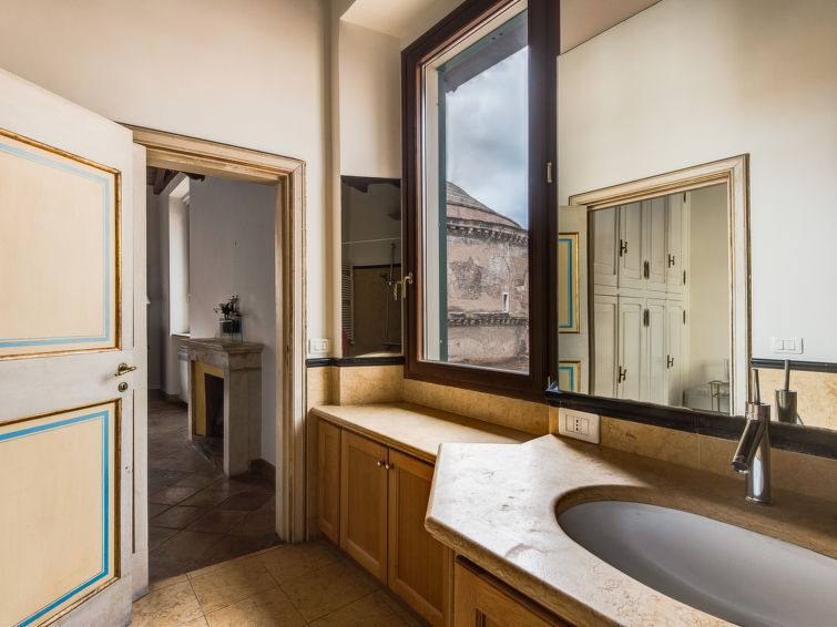 "Pantheon View", 3-Zimmer-Wohnung 120 m2 im 4. Stock. Grosses Wohn-/Esszimmer mit TV. 1 Doppelzimmer mit offenem Kamin (nur Deko). 1 Zimmer mit 2 Betten. Kleine Küche (Geschirrspüler, 4 Flammen, Wasserkocher). Bad/Bidet/WC. G-Heizung, Klimaanlage. Heizung nur verfügbar von 01.11. bis 15.04. Zur Verfügung: Internet (WLAN, gratis). Bitte beachten: Nichtraucher-Unterkunft, kein Parkplatz. Kein Fahrstuhl. IT058091C2X7V275WQ