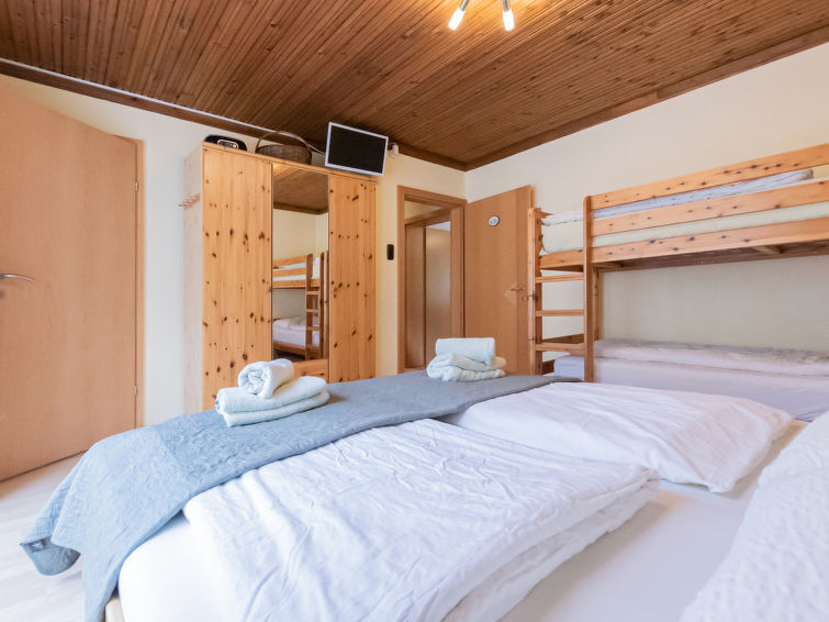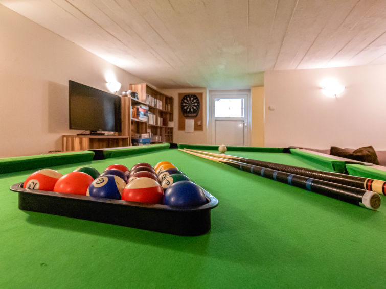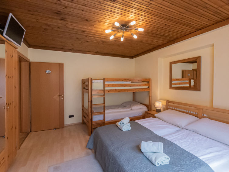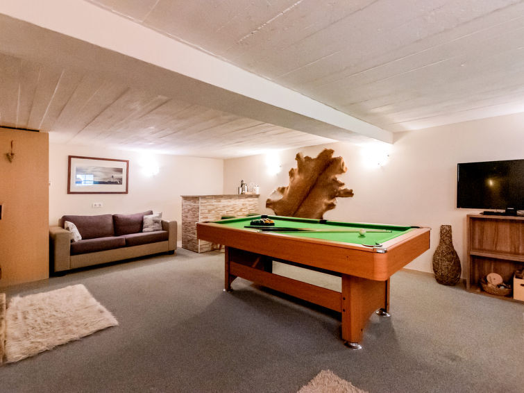 "Charlotte/50604-002146-2020", 10-Zimmer-Haus 240 m2 auf 3 Stockwerken. Gemütlich eingerichtet: 1 Zimmer mit 1 x 2 Etagenbetten, 1 Doppelbett, Bad/Dusche/WC, Kabel-TV, Flachbildschirm, Radio, CD und DVD. Esszimmer mit Esstisch, Kabel-TV, Flachbildschirm, DVD und Holzofen. Grosse Küche (4 Kochplatten, Backofen, Geschirrspüler, Mikrowelle, Tiefkühler, elektrische Kaffeemaschine). Sep. WC. Unteres Geschoss: Spielzimmer mit Kabel-TV (Flachbildschirm). Obergeschoss: 2 Doppelzimmer, jedes Zimmer mit Waschbecken, Dusche und Kabel-TV (Flachbildschirm), Radio, CD und DVD. Ausgang zum Balkon. 1 Doppelzimmer mit Bad/Dusche/WC und Kabel-TV (Flachbildschirm), Radio, CD und DVD. Ausgang zum Balkon. 1 Zimmer mit 1 Doppelbett, Waschbecken, Dusche/WC und Kabel-TV (Flachbildschirm), Radio, CD und DVD. Ausgang zum Balkon. 2. Obergeschoss: 3 Doppelzimmer. Wohnküche (Backofen, Geschirrspüler, 4 Glaskeramikplatten, Wasserkocher, Mikrowelle, elektrische Kaffeemaschine) mit Essecke, Kabel-TV und Flachbildschirm. Ausgang zum Balkon. Bad/Dusche/WC. Schöne Sicht auf die Berge. Zur Verfügung: Bügeleisen, Haartrockner. Internet (WLAN, gratis). Parkplatz beim Haus. Bitte beachten: geeignet für Familien. Nichtraucher-Haus. 1 Haustier/Hund erlaubt. Rauchmelder. Im Keller befindet sich eine Infrarot-Sauna. Im Spielzimmer befinden sich ein Pool Tisch, eine elektronische Dart Anlage, Spielesammlung und eine Bibliothek. Weiters im Haus: Bügeleisen, Babybett, Hochstuhl und Wickelauflage. 50604-002146-2020
