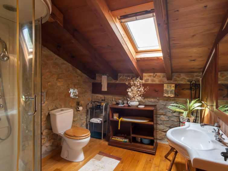 "El Pajar", 3-Zimmer-Haus 80 m2 im 1. Stock. Rustikal eingerichtet: Wohn-/Esszimmer mit offenem Kamin und Digital-TV. Ausgang zum Balkon. 2 Zimmer mit Vorhang, jedes Zimmer mit 2 Betten (80 cm, Länge 185 cm). Offene Küche (Backofen, 2 Glaskeramikplatten, Mikrowelle, Tiefkühler) mit Esstisch. Dusche/WC, Hydromassage-Dusche. Holzheizung. Grosse Laube. Terrassenmöbel, Loggia. Sicht auf die Berge und den Fluss. Zur Verfügung: Waschmaschine, Bügeleisen, Haartrockner. Typisch rustikales Haus, vollständig renoviert. Es befindet sich innerhalb eines charmanten Anwesens von 2 ha mit einem Fluss (dort können Sie Forellen angeln), der da durchfliesst. Ideale Ausgangslage, um sich zu entspannen. Die Terrasse erstreckt sich über die gesamte untere Etage. R000000001