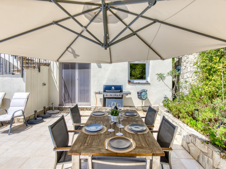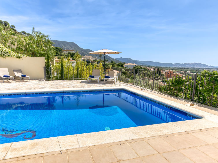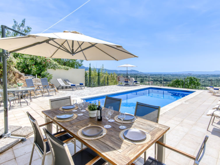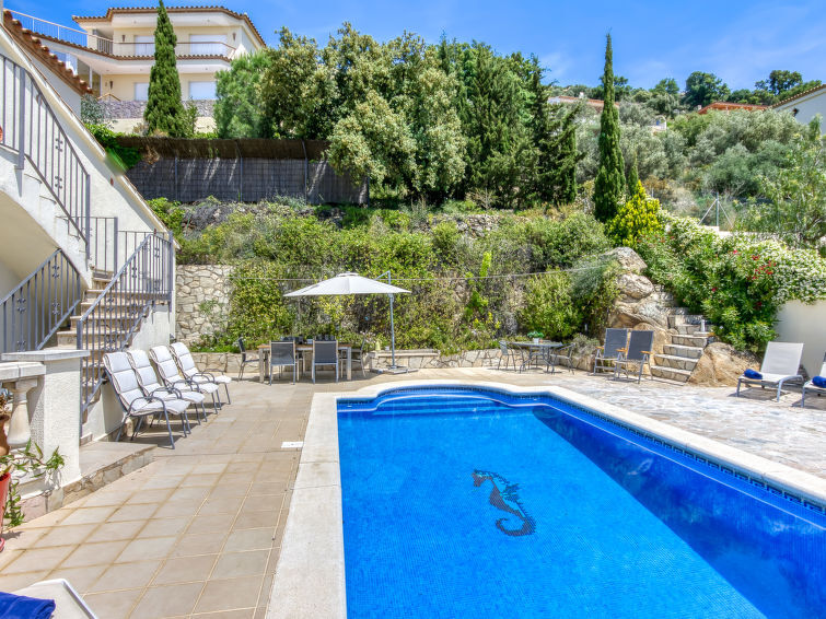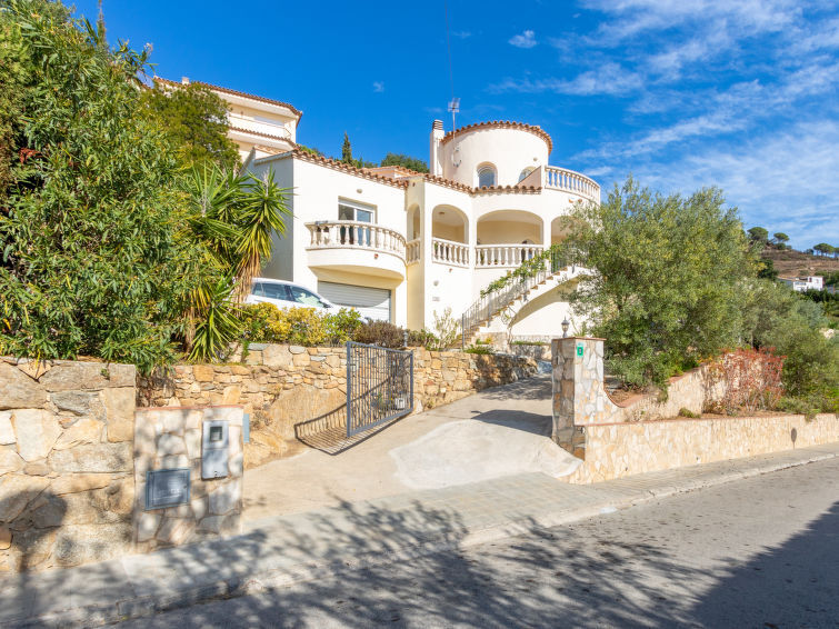 5-Zimmer-Villa 224 m2 auf 2 Stockwerken. Geräumig und hell, komfortabel und stilvoll eingerichtet: Wohn-/Esszimmer 39 m2 mit Sat-TV. Ausgang zur Terrasse, zum Schwimmbad. 1 Zimmer 15 m2 mit 1 franz. Bett (160 cm, Länge 190 cm), Dusche/WC, Klimaanlage und Warmluftheizung. Ausgang zur Terrasse. 1 Zimmer 11 m2 mit 1 franz. Bett (150 cm, Länge 190 cm), Klimaanlage und Warmluftheizung. 1 Zimmer mit 2 Betten (90 cm, Länge 190 cm), Klimaanlage und Warmluftheizung. Offene Küche (Backofen, Geschirrspüler, 3 Induktionskochplatten, Toaster, Wasserkocher, Mikrowelle, Tiefkühler, elektrische Kaffeemaschine) mit Esstisch. Bad/WC. Obergeschoss: (Aussentreppe) 1 Zimmer mit 1 franz. Bett (150 cm, Länge 190 cm), Dusche/WC, Klimaanlage und Warmluftheizung. Ausgang zur Terrasse. Grosse Terrasse. Terrassenmöbel, Gartengrill, Liegestühle. Herrliche Panoramasicht auf das Meer und die Berge. Zur Verfügung: Waschmaschine, Bügeleisen, Haartrockner. Internet (WLAN, gratis). Parkplatz (3 Autos) beim Haus. Bitte beachten: ein Doppelzimmer liegt außerhalb der Wohnung. Nichtraucher-Haus. TV nur DE, FR, ES. Kein Fahrstuhl. HUTG-064538 // Reg. Nr.: ESFCTU00001700800097820600000000000000000HUTG-0726257