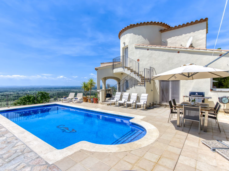 Grosse, moderne, gemütliche Villa "Golden", auf 2 Stockwerken. Im Ort Palau Savardera, 9 km vom Zentrum von Roses, ruhige, sonnige Lage im Villenviertel, verkehrsberuhigte Zone, 7 km vom Meer, 7 km vom Strand, Richtung Südwesten. Zur Alleinbenutzung: grosser terrassierter Garten (eingezäunt) mit Pflanzen und Bäumen, Schwimmbad eckig (9 x 4 m, 100 - 200 cm tief, saisonale Verfügbarkeit: 01.Mai. - 30.Okt.) mit Innentreppe. Terrasse, Gartenmöbel, Grill, Parkplatz (für 3 Autos) auf dem Grundstück. Lebensmittelgeschäft 3 km, Supermarkt 3 km, Restaurant, Bar, Café 500 m, Bushaltestelle "Moventis estació bus Roses" 8.8 km, Bahnstation "Estación Tren Vilajuiga" 6 km, Sandstrand "Roses" 9 km. Sporthafen 9 km, Golfplatz (18 Loch) 12 km, Segelschule 9 km, Tennis 3 km, Reitstall 5 km. Nahe gelegene Sehenswürdigkeiten: Zona de padel con bar y restaurante 500 m, Parque Acuático Roses Aquabrava 3 km, Túnel del viento y Skydive Empuriabrava 12 km, Cadaqués y Cap de Creus 18 km, Museo Dalí Figueres 22 km, Castillo y festival de Perelada 15 km. Bitte beachten: Fahrzeug empfohlen. Der Besitzer akzeptiert keine Jugendgruppen. Die Schlüsselübergabe findet bei der Agentur Interhome in Empuriabrava statt.