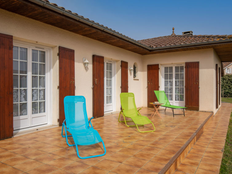 Gujan Mestras 10 km van Arcachon: Eengezinswoning "L'Albizia". 2.3 km van zee, 2.3 km van het strand. Voor alleengebruik: terrein 1.000 m2 (omheind), parkeerplaats op het terrein. Supermarkt 2.6 km, restaurant, bakkerij 450 m, bushalte "La Prairie" 600 m, treinstation "Gujan/La Hume" 2.3 km, zandstrand "la Hume" 2.3 km. Golfterrein (18 holes) 7.1 km, fietspad 300 m. Attracties in de buurt: Eratopia 3.6 km, Arca Jet Marine 7.3 km, Dune du Pyla 12.1 km, Navette maritime pour le Cap Ferret 9 km, Casino 8 km, Réserve Ornithologique du Teich 7.1 km. Bekende meren kunnen gemakkelijk worden bereikt: Lac de la Magdeleine 5.1 km, Lac de Cazaux 16.7 km.