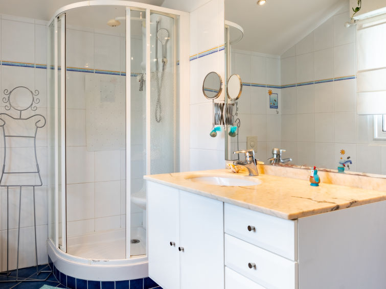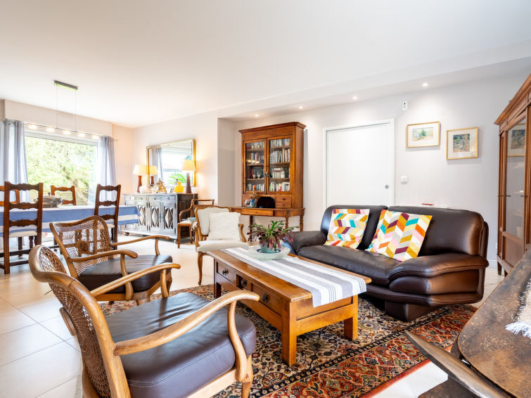Villa 4-kamers 140 m2 op 2 verdiepingen. Comfortabel en mooi ingericht: woon-/eetkamer. Uitgang naar de tuin, naar het terras. 1 kamer met 1 2-pers bed (140 cm, lengte 190 cm). Slaapnis met 1 2-pers divanbed (140 cm, lengte 190 cm), TV (Flatscreen TV). Uitgang naar de tuin, naar het terras. Keuken (5-pits kookplaat, oven, afwasmachine, broodrooster, waterkoker, magnetron, diepvriezer, elektrische koffiemachine). Douche, aparte WC. Gas-verwarming, air-conditioning. Bovenverdieping: 1 kamer met 1 bed (90 cm, lengte 190 cm), 1 2-pers bed (140 cm, lengte 190 cm). 1 kamer met 1 2-pers bed (160 cm, lengte 200 cm). Bad/douche/WC. Gas-verwarming, air-conditioning. Groot terras 30 m2, op het westen gelegen, groot terras 40 m2, op het zuidoosten gelegen, tuin. Terrasmeubelen, barbecue, ligstoelen. Ter beschikking: wasmachine, strijkijzer, haardroger. Internet (WiFi, gratis). Parkeerplaats (omheind, 2 Auto's). Geschikt voor families. Rookvrij huis. Maximaal 1 huisdier/hond toegestaan. Rookmelders. Aanbod door een particulier volgens art. 155, IV van CGI. 640240047619F