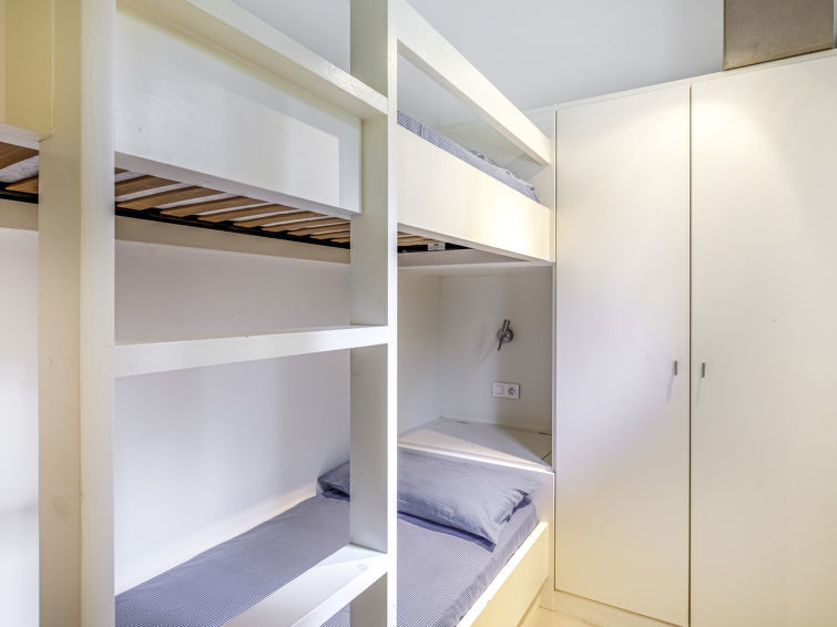 "Le Trois du Petit Sperone", appartement 3-kamers 40 m2. Het objekt is geschikt voor 2 volwassenen + 2 kinderen. Ruim en licht, stijlvol en gezellig ingericht: woon-/eetkamer met 1 2-pers divanbed (160 cm, lengte 190 cm), TV (Flatscreen TV). Uitgang naar de tuin, naar het terras, naar het zwembad. 1 kamer met 1 x 2 stapelbedden (90 cm, lengte 190 cm). Open keuken (oven, afwasmachine, 4 inductiekookplaten). Douche/WC. Elektrische verwarming, air-conditioning. Bovenverdieping: 1 kamer met 1 2-pers bed (160 cm, lengte 200 cm), douche/WC en TV (Flatscreen TV). Uitgang naar het terras. Klein terras 4 m2. Terrasmeubelen, ligstoelen (2). Mooi uitzicht op het landschap. Geschikt voor families. Maximaal 1 huisdier/hond toegestaan. Rookmelders. 2A0410004974V