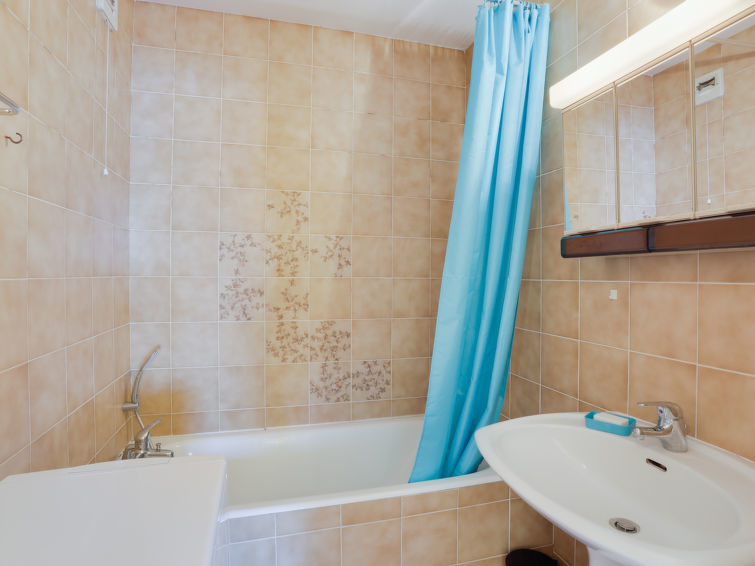 Appartement 2-kamers 45 m2 op de 1e verdieping, op het noordwesten gelegen. Woon-/eetkamer met 1 2-pers divanbed (140 cm, lengte 190 cm), TV (Flatscreen TV), elektrische rolluiken. Uitgang naar het balkon. 1 kamer met 1 2-pers bed (140 cm, lengte 190 cm), elektrische rolluiken. Kookhoek (oven, 3 keramische glas kookplaten, broodrooster, waterkoker, magnetron, elektrische koffiemachine). Badkamer, aparte WC. Elektrische verwarming. Groot balkon 30 m2. Balkonmeubilair. Mooi uitzicht op zee. Ter beschikking: wasmachine, strijkijzer. Internet (Internet (WiFi), extra). Garage nr. 12/13. Rookmelders.