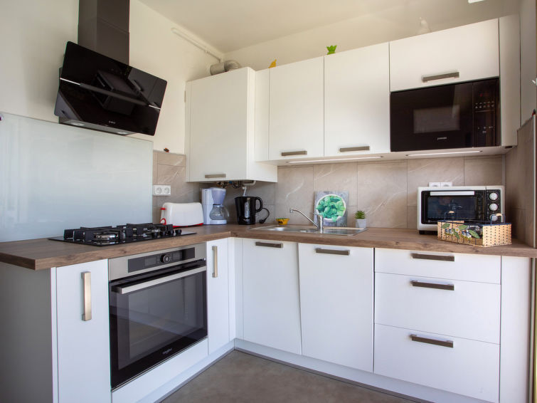 Appartement 2-kamers 55 m2 op de 3e verdieping, op het westen gelegen. Licht, mooi ingericht: woon-/eetkamer met 1 2-pers divanbed (1 x 140 cm, lengte 190 cm), TV en Flatscreen TV. Uitgang naar het terras. 1 kamer met 1 2-pers bed (1 x 140 cm, lengte 190 cm). Keuken (4-pits kookplaat, oven, afwasmachine, broodrooster, waterkoker, magnetron, elektrische koffiemachine). Uitgang naar het balkon. Douche, aparte WC. Gas-verwarming. Balkon 8 m2, op het oosten gelegen, terras 12 m2, op het westen gelegen. Terrasmeubelen. Mooi uitzicht op het zwembad en de tuin. Ter beschikking: wasmachine, strijkijzer, haardroger. Internet (WiFi, gratis). Niet rokers woning. Maximaal 1 huisdier/hond toegestaan. Rookmelders. Aanbod door een particulier volgens art. 155, IV van CGI. 06027031791MX